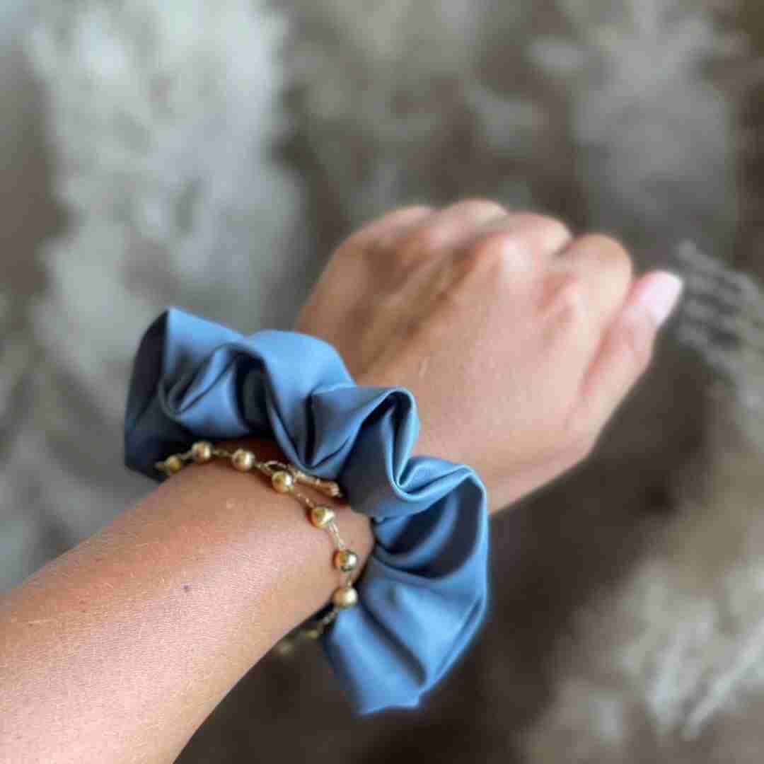Coletero Scrunchie Luxury 3 en 1 Azul Denim