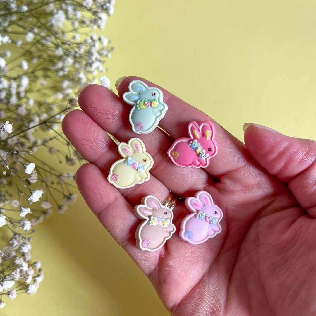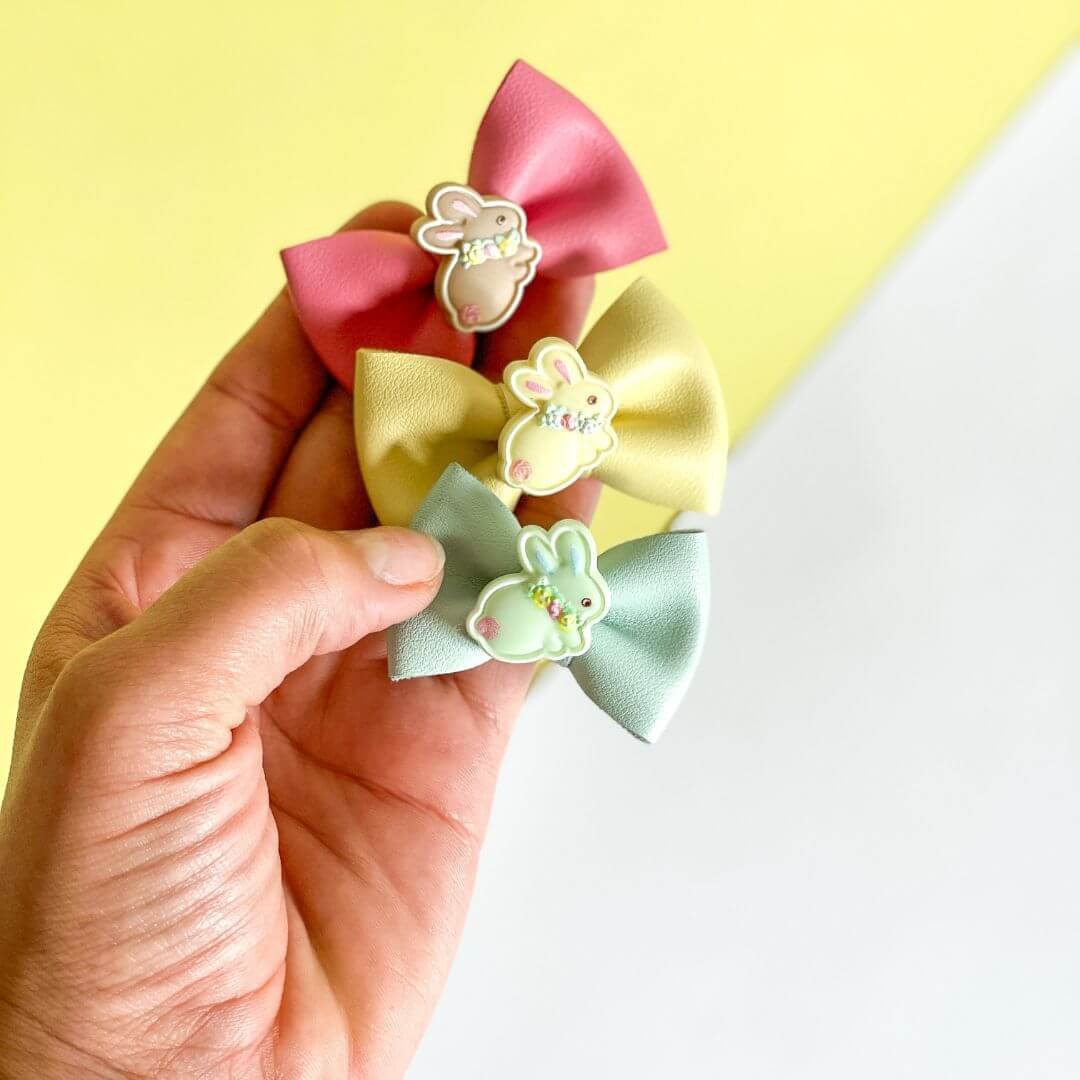 Material: Polipiel color a elegir con aplique de conejito en resina