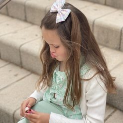 Pack compuesto de 4 lazos: vichy, tie dye, florecitas y leopardo lila