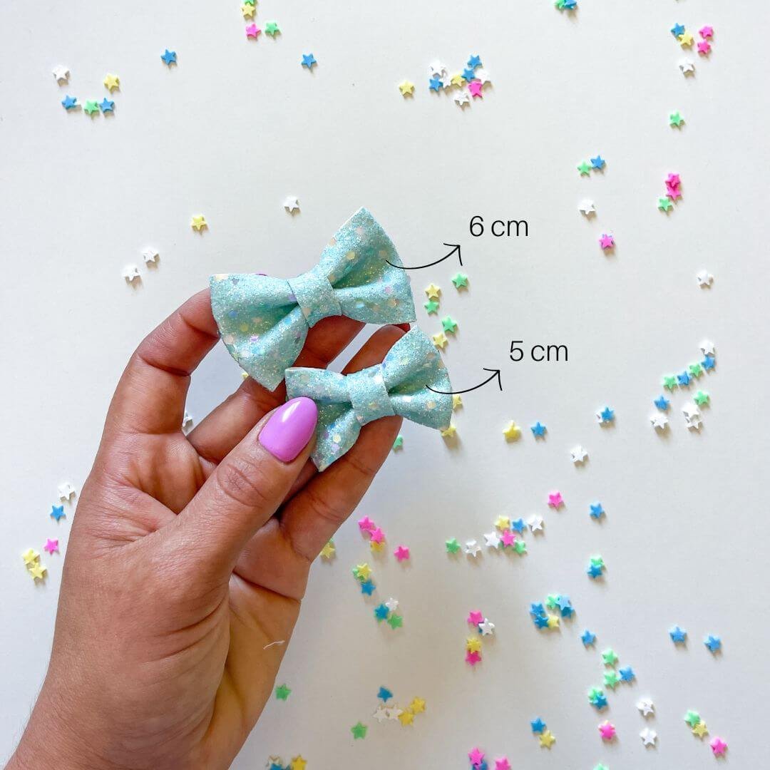 Pack compuesto de 4 lazos, 2 parejas de cada estampado (vichy color mix, y florecitas, 2 tamaños a elegir